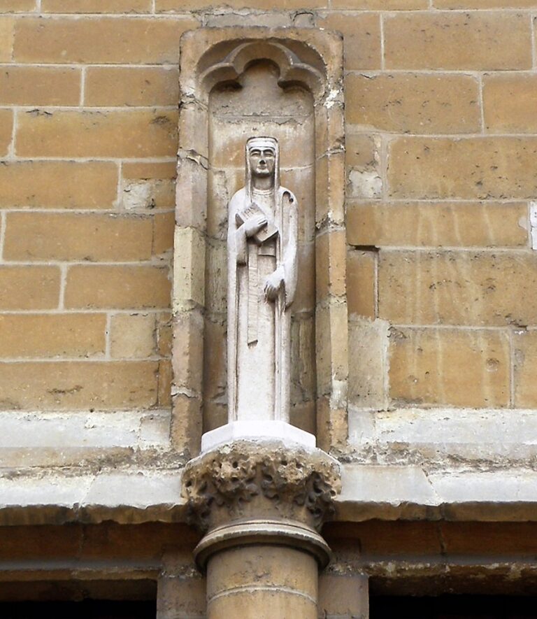 Bovenop de barokke biechtstoel (door J. Van Tendelo, 1651) in de noordkoorgang werd waarschijnlijk haar beeldje toegevoegd: met zeer lange hoofdsluier; [beide handen verloren].